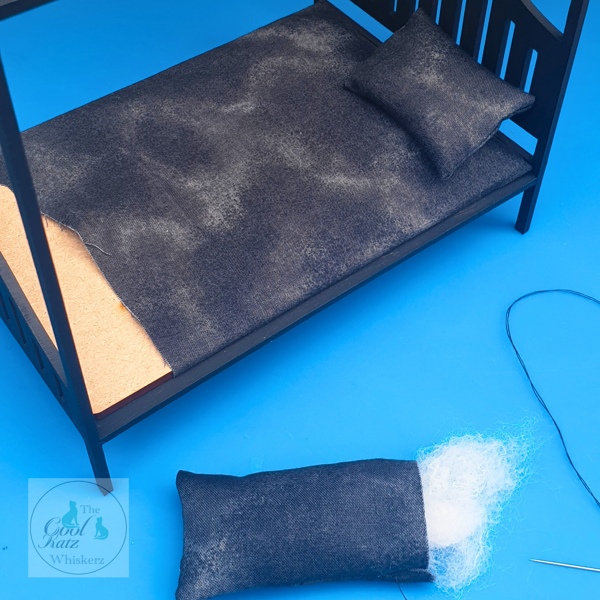 It is self evident how the bed and side tables are quickly made so dependant upon your choice of finish (black paint for me), there is lots of time while this is drying to plan the dressing of the bed and the accessories.