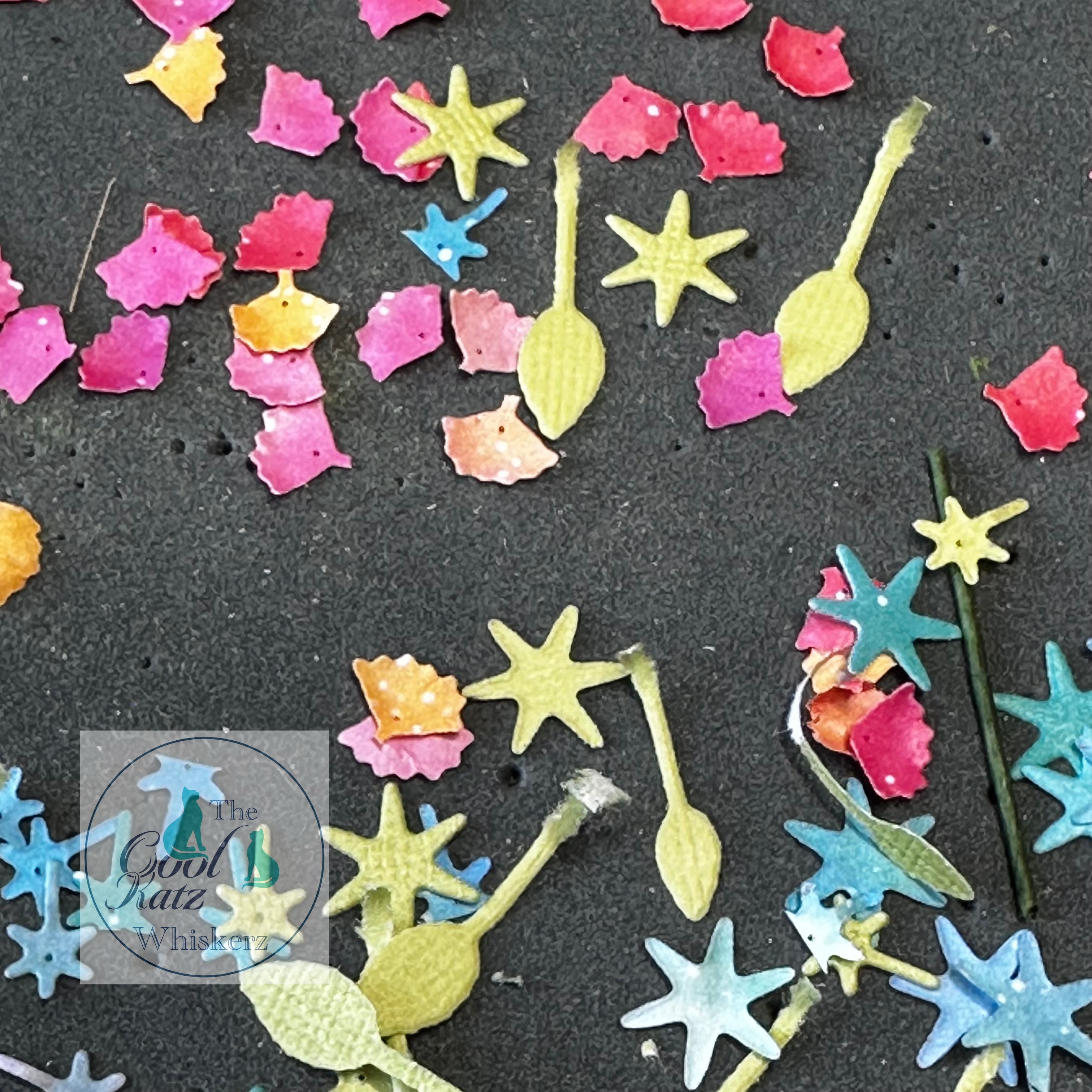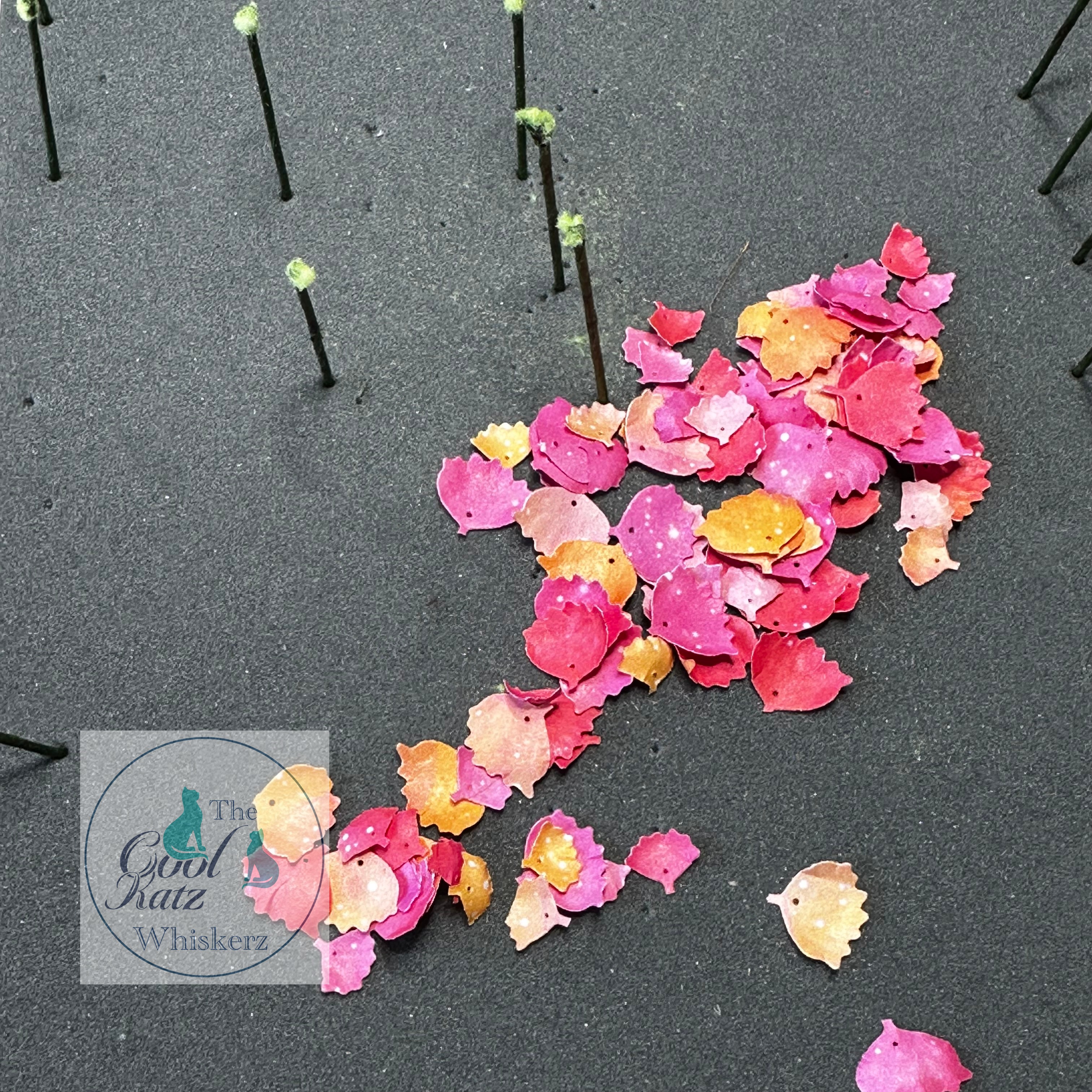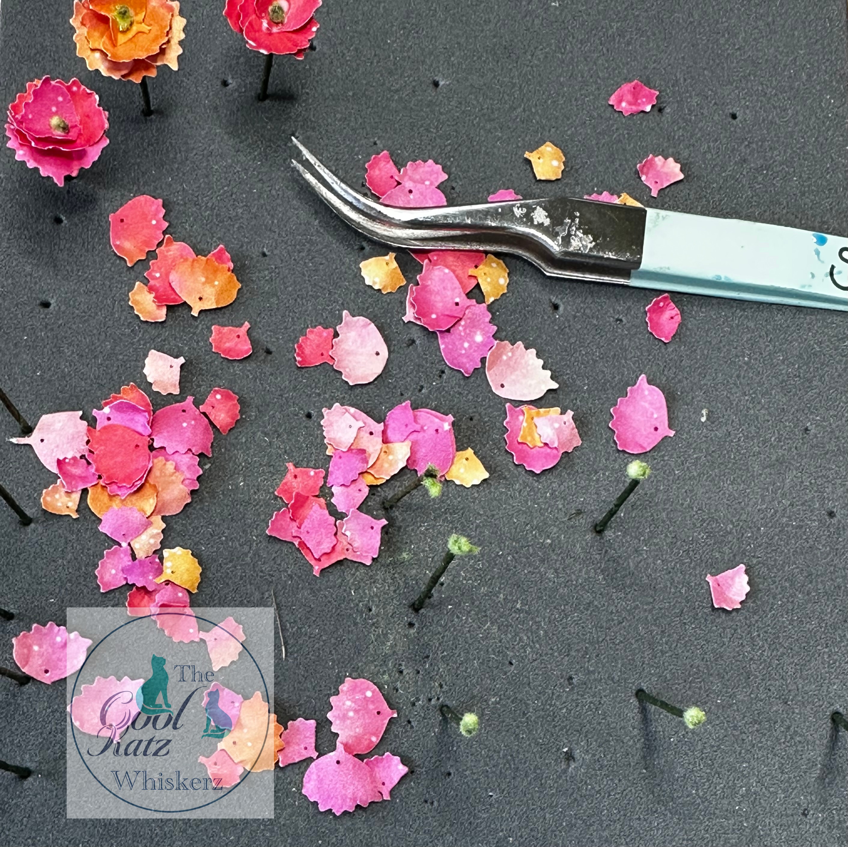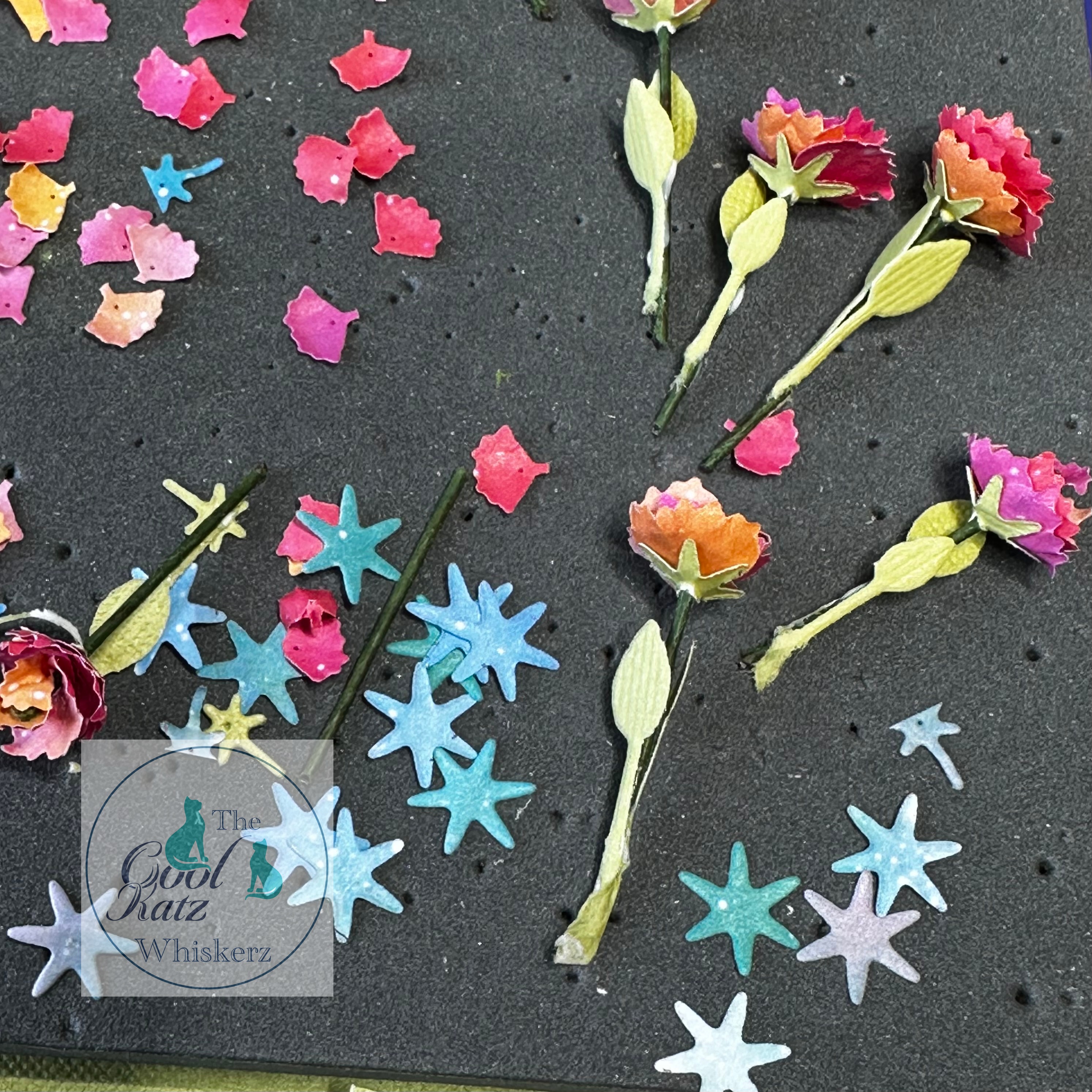 Then using the Ruffle Petal Die I cut out a selection, these papers are