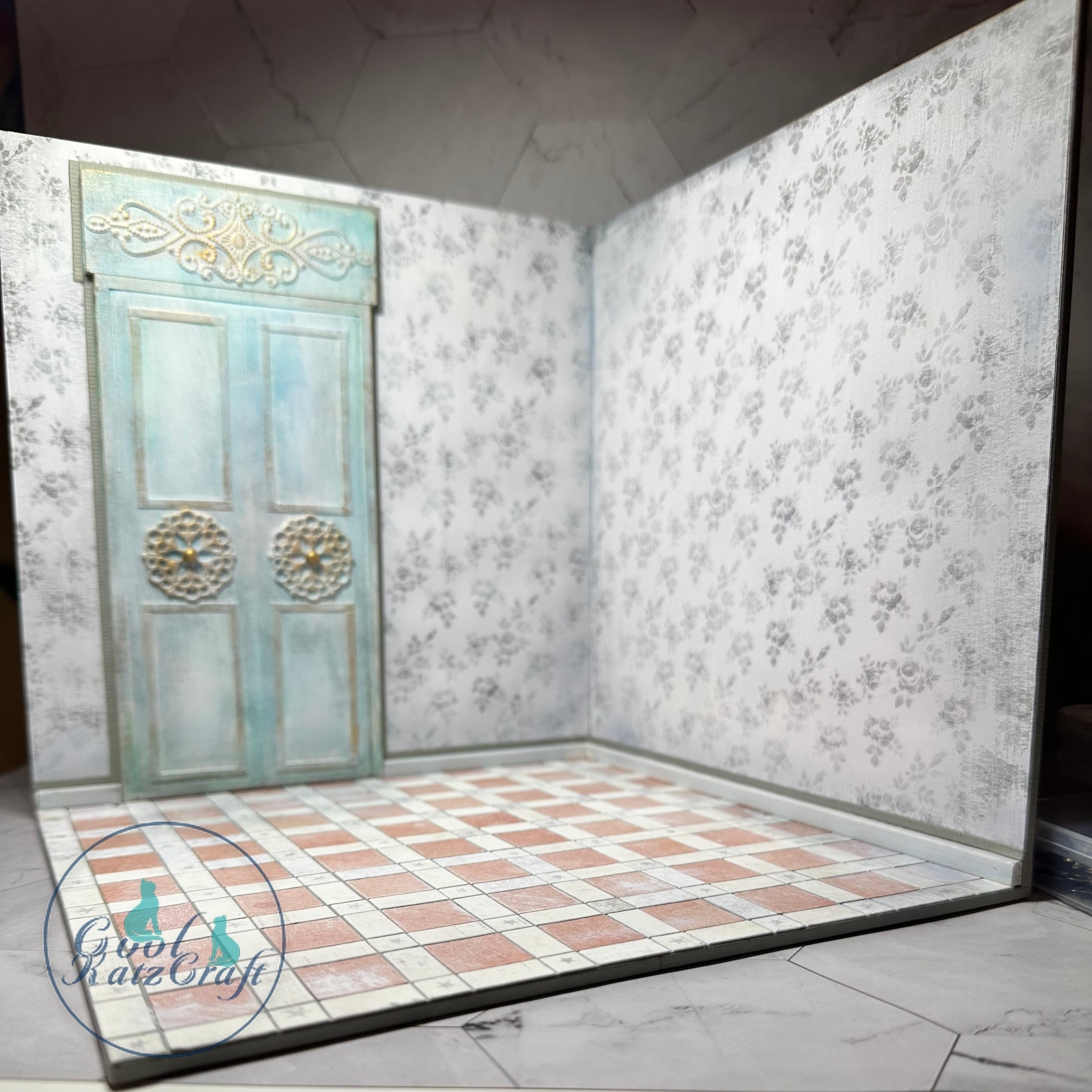 The walls are covered in Scrapbooking paper from my stash. They were dry