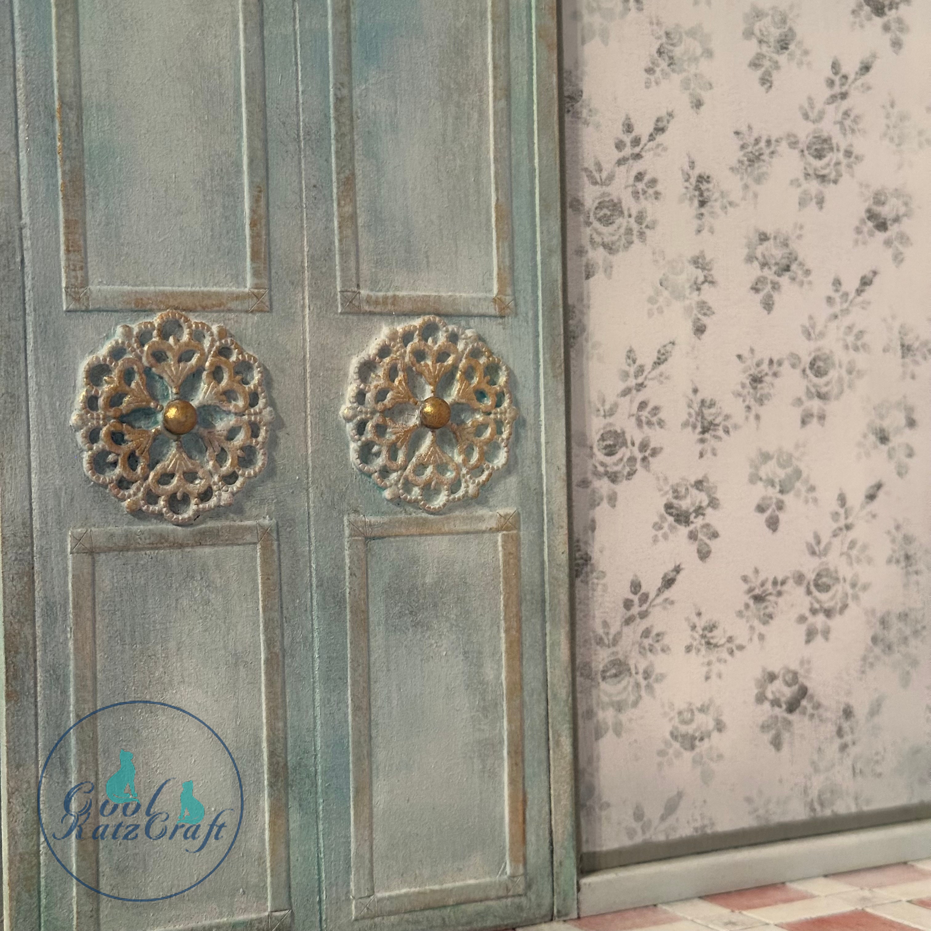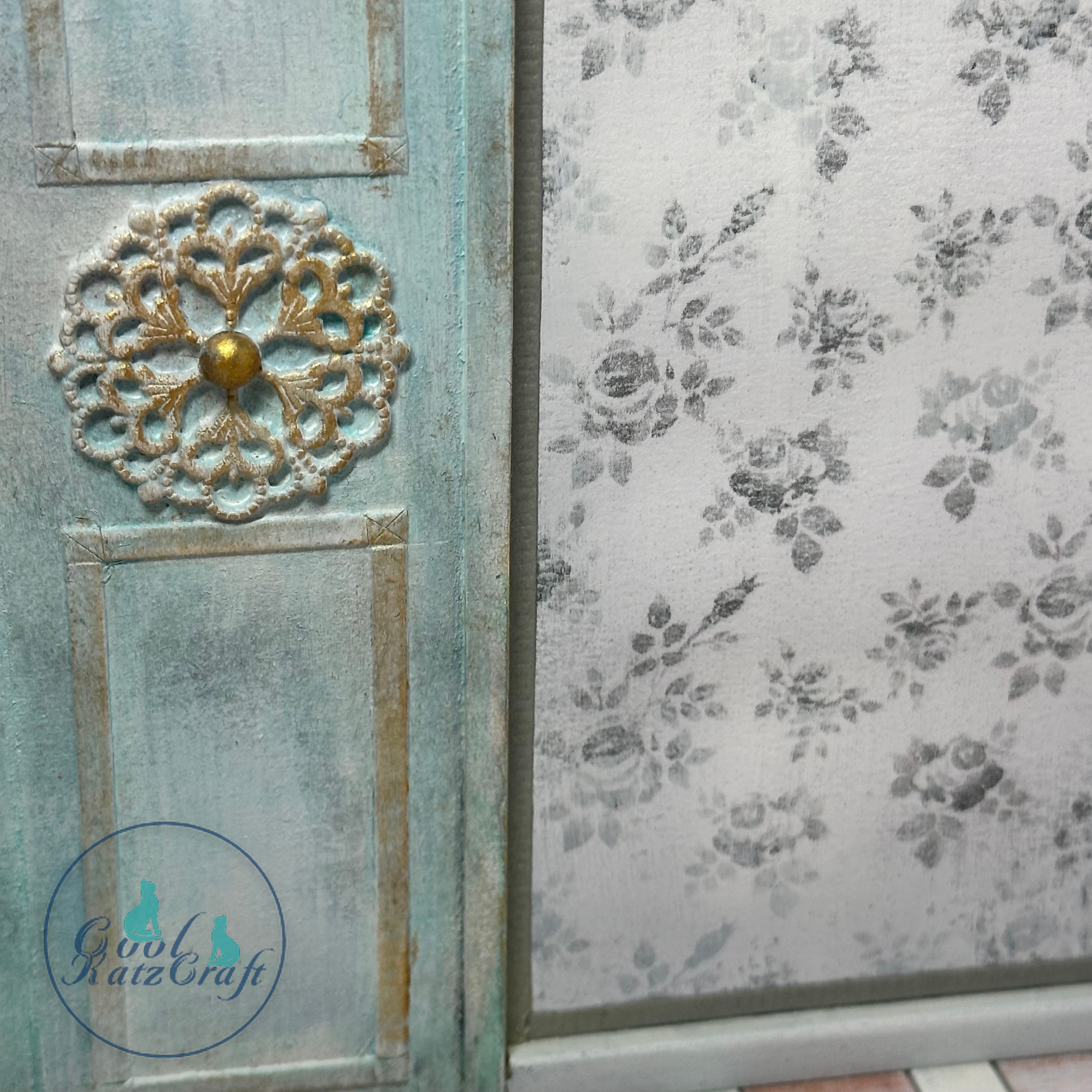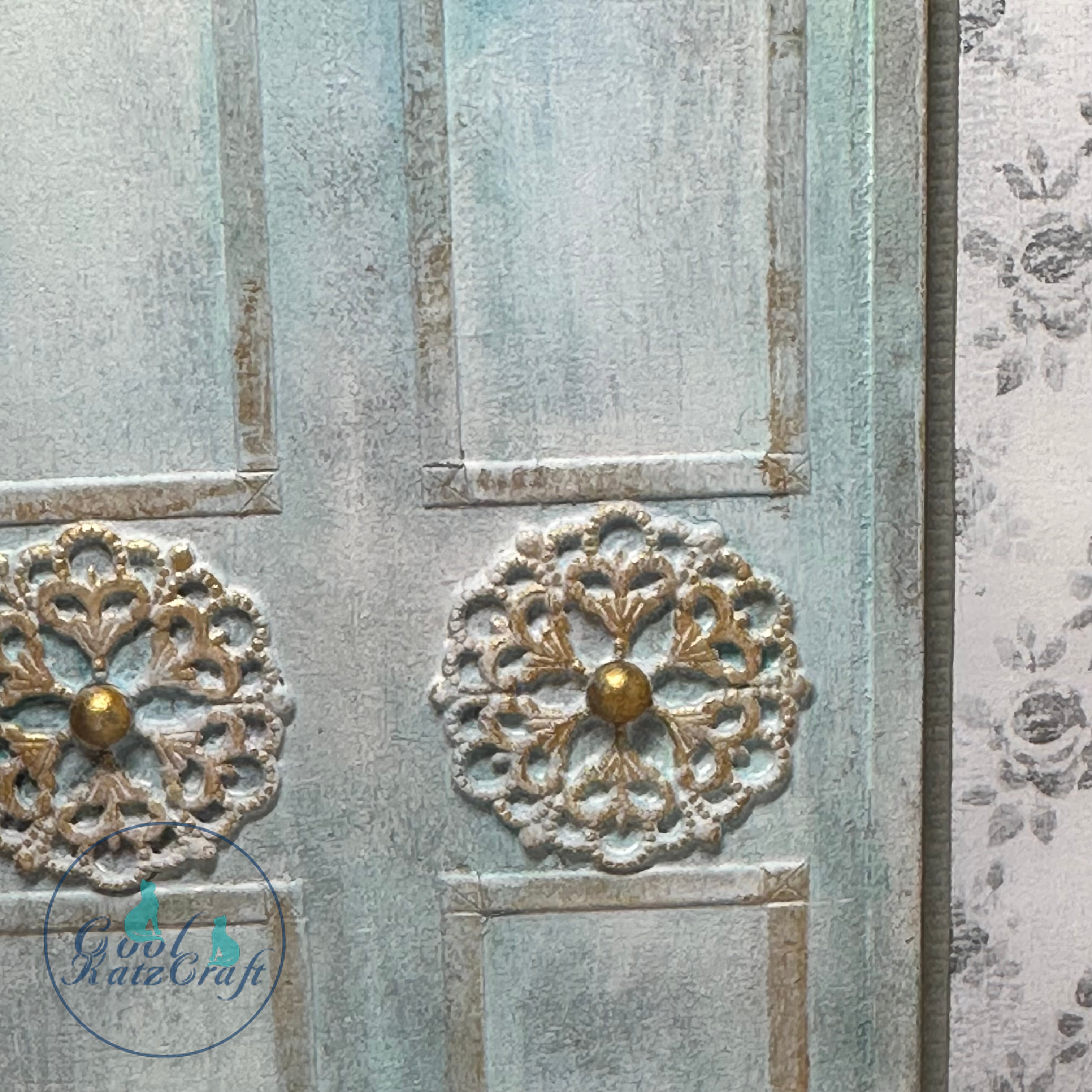 I dry brushed the door and frame using a mixture of turquoise and blue