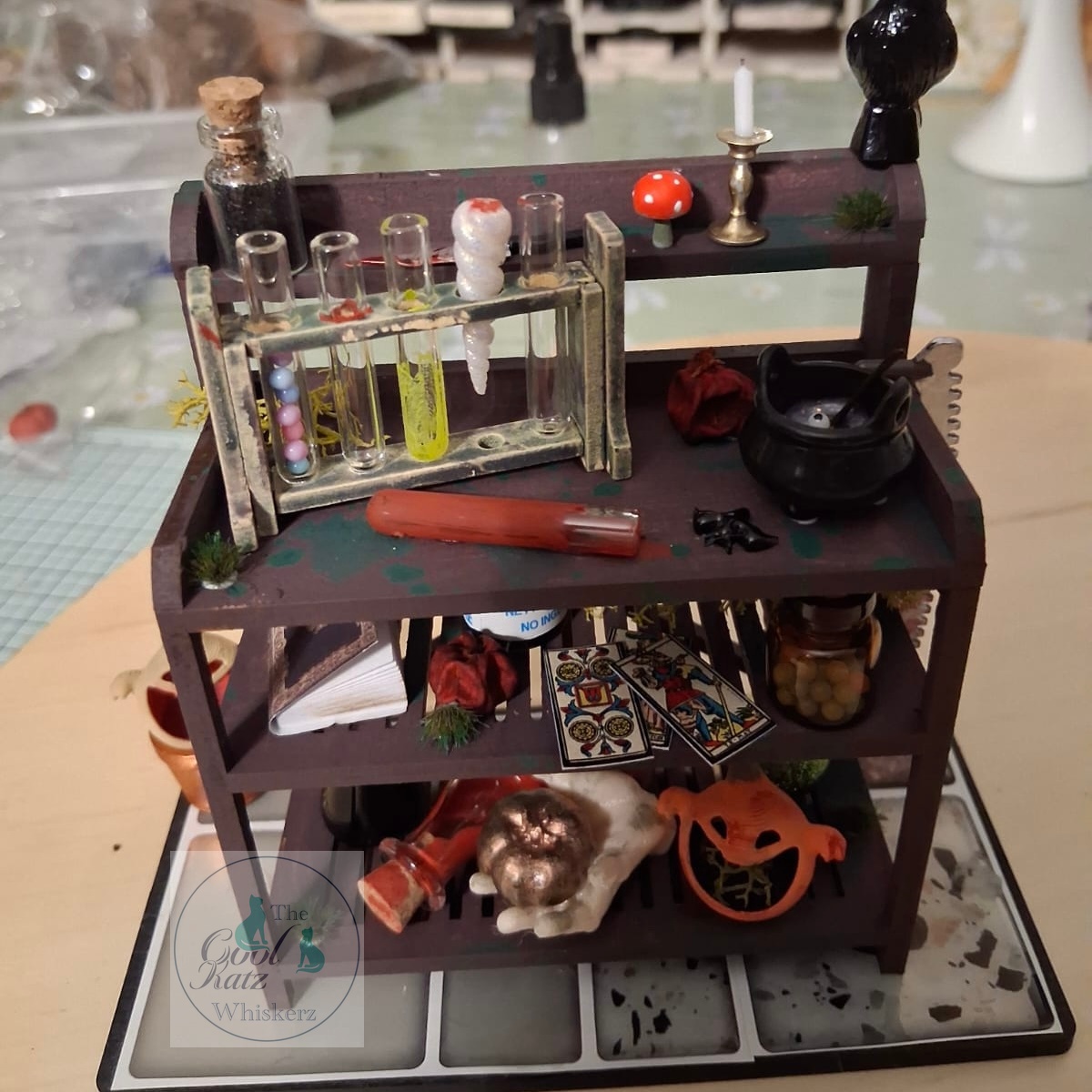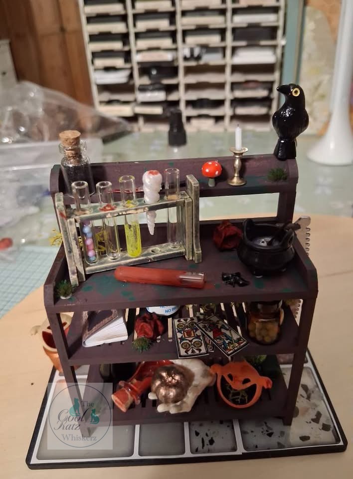 The workbench is CKC 1:12 potting bench made over to represent a potion mixing work station.